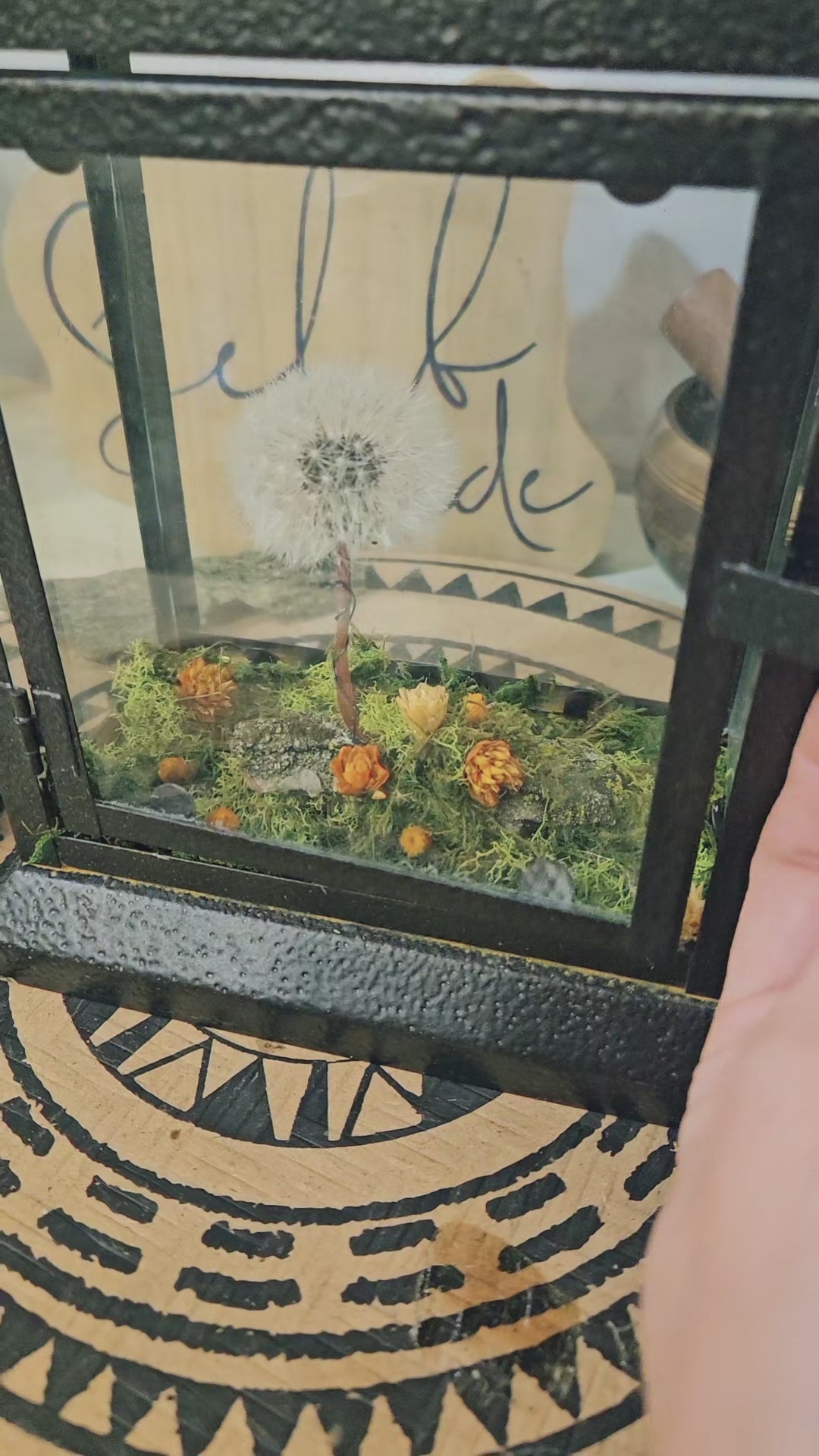 Within this thrifted lantern rests a dream, waiting patiently to be released. No longer a wishing flower, but an acomplished dream.
